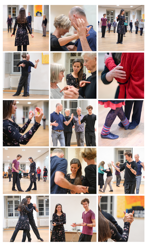 In diesem Sinne lernen wir folgendes um es später wieder zu „vergessen“: Übungen alleine, zu zweit und in der Gruppe z. B. zu Stabilität, Achse & Balance, Präzision in der Drehtechnik, Pivot, Dissoziation, mehrspuriges Gehen, Enrosques, …